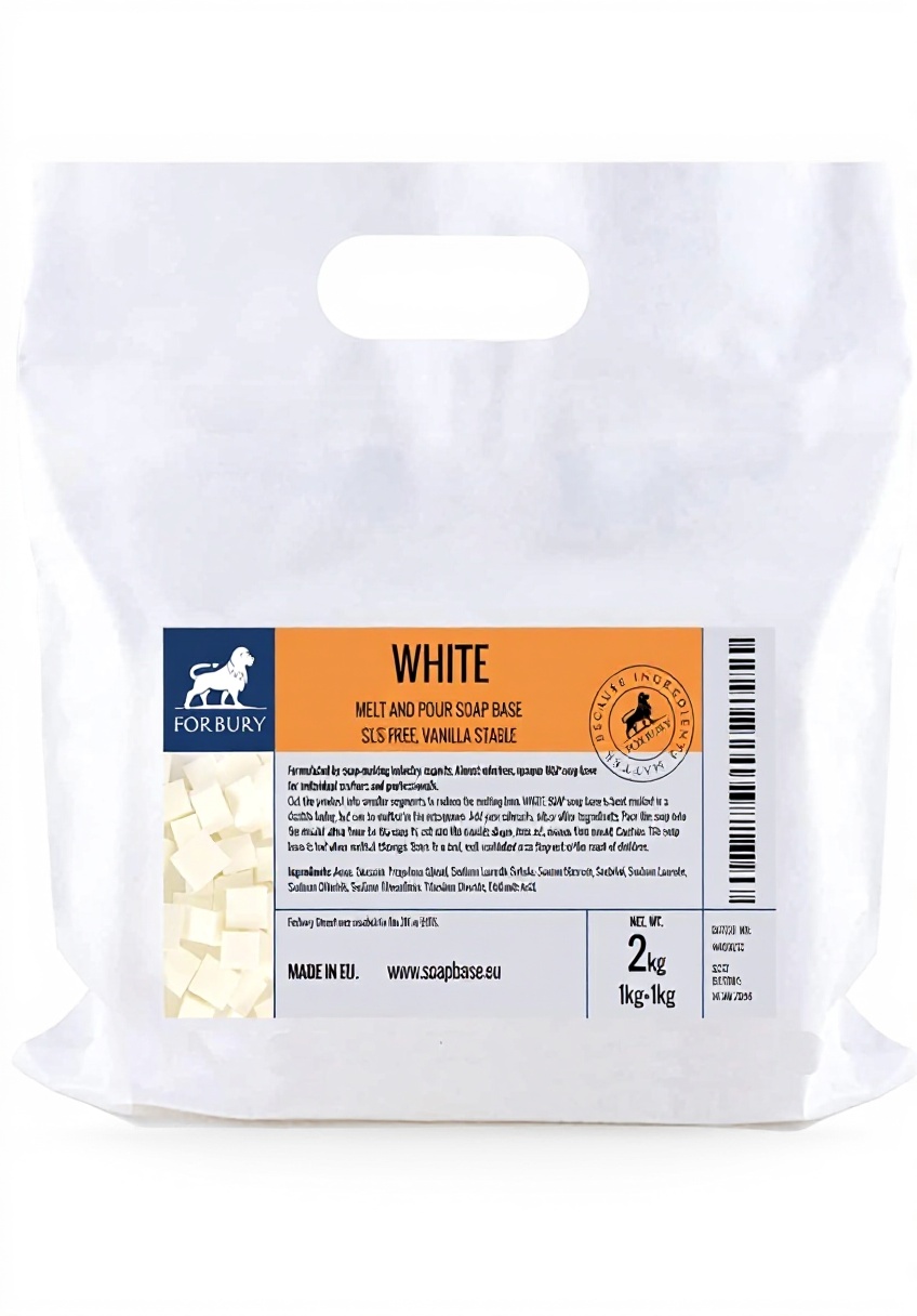 Cette base de savon blanc de Forbury Direct est conçue pour la fabrication de savons artisanaux. Elle est exempte de SLS, opaque et facile à fondre et à verser, offrant une texture lisse et une mousse douce pour des soins corporels naturels.
