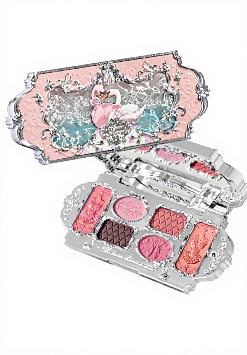 Cette palette compacte présente un design détaillé avec un sac argenté, des gravures de jupes de ballet et de pantoufles, des accents de cygnes peints à l’huile et des ondulations d’eau, incluant un miroir complet. Léger et portable, l’étui mesure une taille pratique pour une utilisation nomade, avec des dimensions adaptées aux besoins de maquillage quotidien ou occasionnel.
