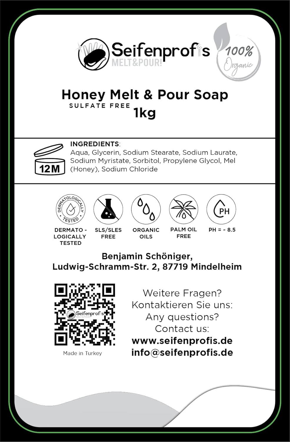 Cette base de savon brut transparente au miel et glycérine est spécialement formulée pour la fabrication de savons personnalisés. Sa composition naturelle inclut 25% de glycérine qui procure une mousse crémeuse et des propriétés hydratantes exceptionnelles. Le miel agit comme un booster d’humidité naturel tout en formant une barrière protectrice pour la peau.
