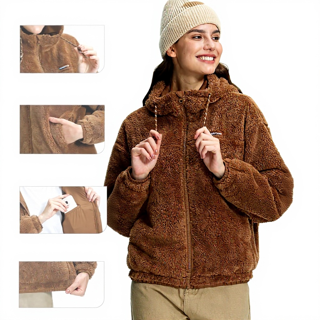 Cette veste polaire pour femme allie innovation et confort grâce à sa doublure intérieure et extérieure en surface de flanelle de corail. Conçue pour optimiser la rétention de la chaleur corporelle, elle est respirante et respectueuse de la peau. Son design réversible offre deux styles distincts dans un seul vêtement, économisant ainsi de l’espace et de l’argent.